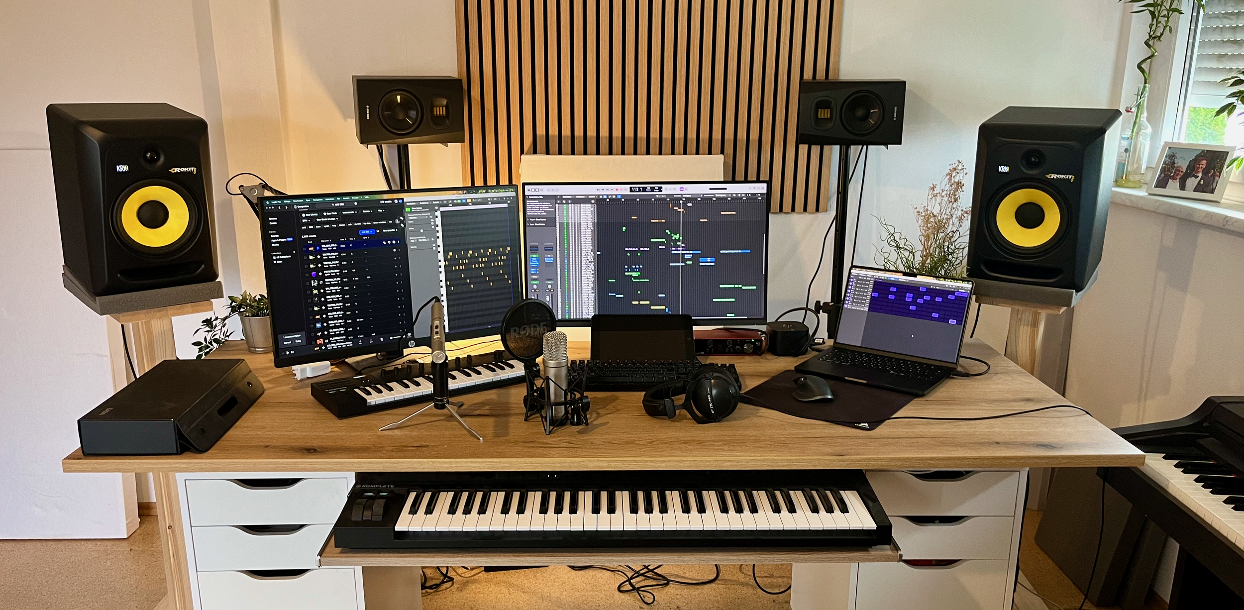 Unser Studio arbeitet fast ausschließlich mit bewährten, professionellen Tools, die bereits bei der Entstehung einiger erfolgreichen Hits zum Einsatz kamen. Damit ist klar: Entscheidend für den Erfolg ist nicht das Equipment, sondern die Erfahrung und das Können des Menschen dahinter.